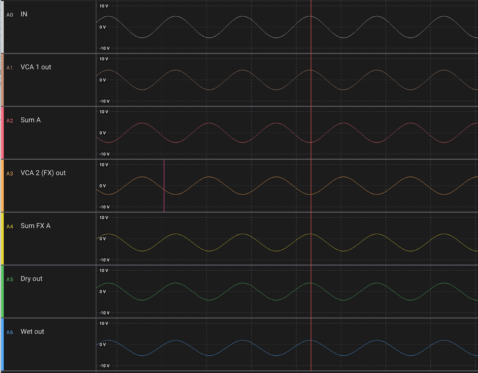 - Invert all input VCAs (but leave the wet/dry). That way, Sum A and Sum FX A are in phase